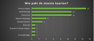 Over de kaartenpakkers zijn jullie redelijk eenduidig. Stankov gaat zijn verzameling flink aanvullen, Breedijk en Kok gaan ook voor een volgende kwartet. Niet geheel toevallig zijn het spelers die vorig jaar ook vaker dan gemiddeld zich bij de scheidsrechter mochten melden…..